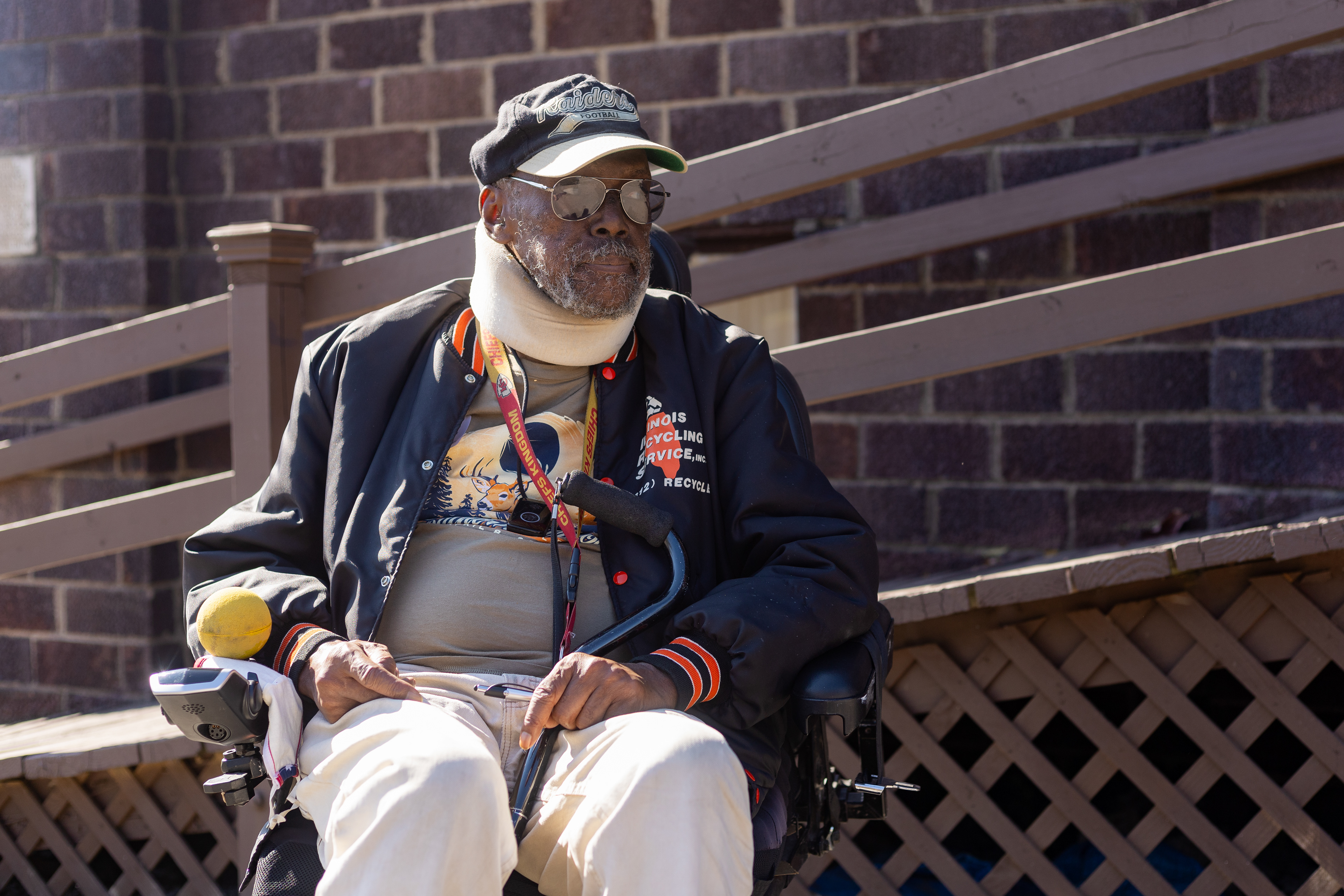 Rayeshun Hicks sits for a portrait in the Bethel Church basement where Feed My Sheep is hosted, Oct. 23, 2024. In May of 2023 Hicks lost his wife, who was wheelchair-bound. He came to Carbondale shortly afterward in July. Since then he had been renting an apartment, but he chose not to renew his lease when it ran out in October of this year. Hicks states that he didn't like living there due to bad neighbors and poor management, and would rather sleep on the street, which is what he did most days while he had the apartment.